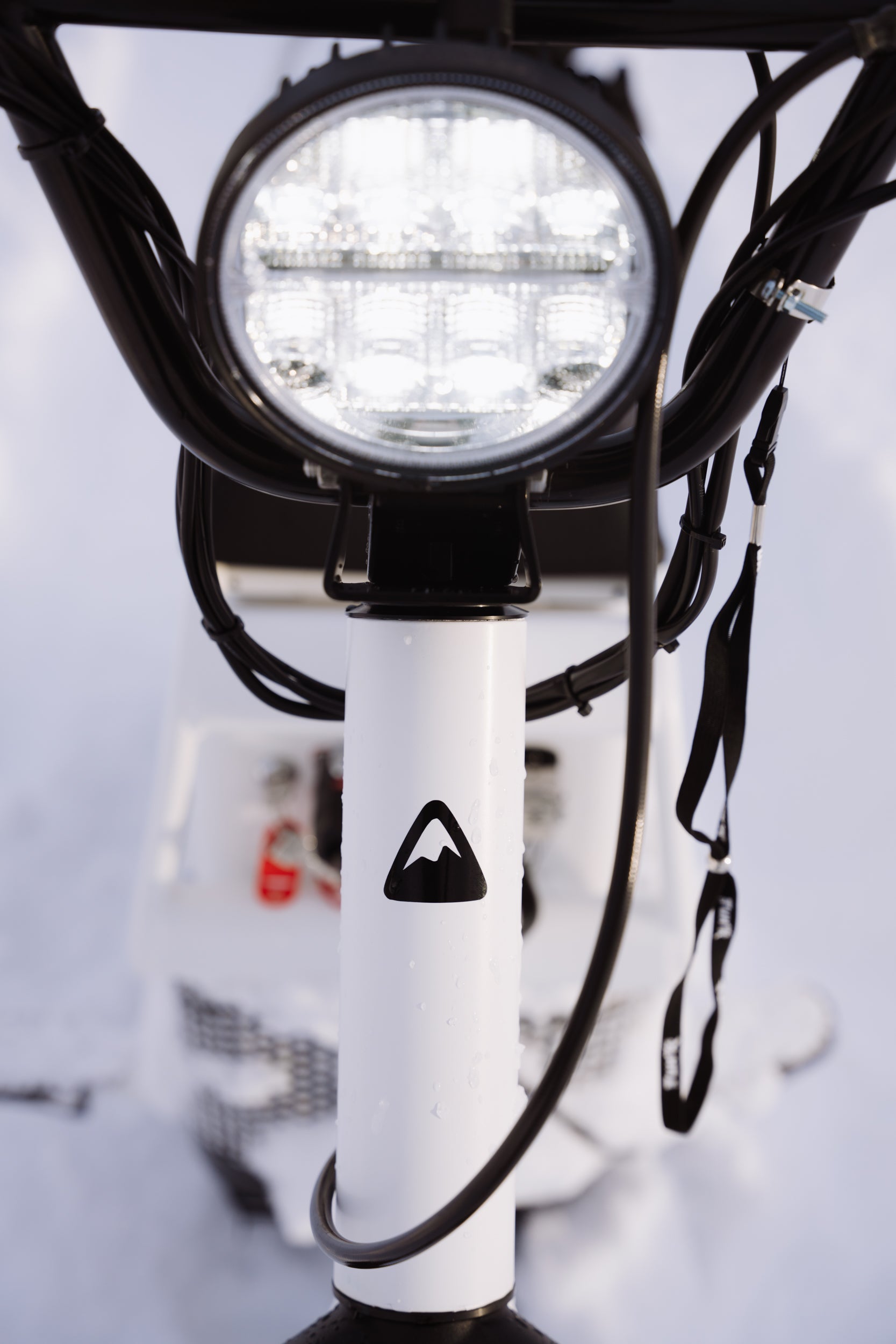 Extra battery (2.5kWh) + its standard charger. Double-up your range (up to 3 hours) thanks to an additional battery (estimation with a 175 lbs/80Kg rider on a groomed trail). With the heated battery box, the battery offers cold resistance down to -25°C/-13°F. Easily connect the charging cable directly to the MoonBike or remove the battery and charge it at home. The charging time is 5h45 with the standard charger (included), 3h with optional fast charger.