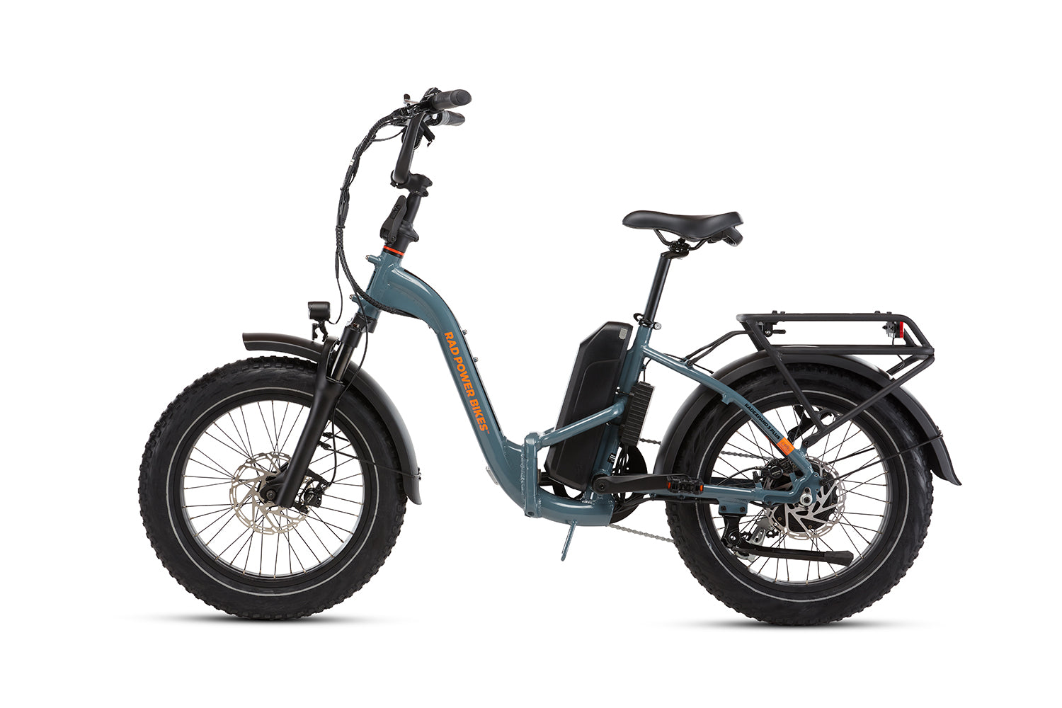 Rad's taken the classic RadExpand and enhanced it with front suspension and hydraulic disc brakes for smoother rides on any terrain. Our most advanced folding bike yet features our turn signals, all-new tech, and retractable pedals for even easier storage.